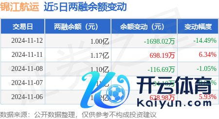 本站音信云开体育,11月12日,锦江航运(601083)融资买入645.19万元,融资偿还2342.96万元,融资净卖出1697.77万元,融资余额9988.71万元。