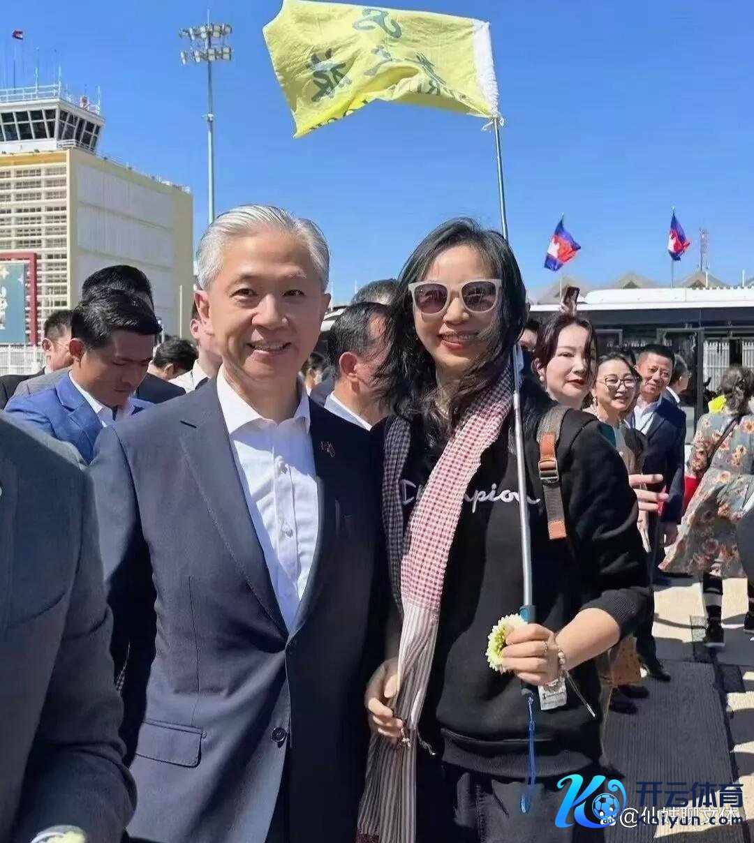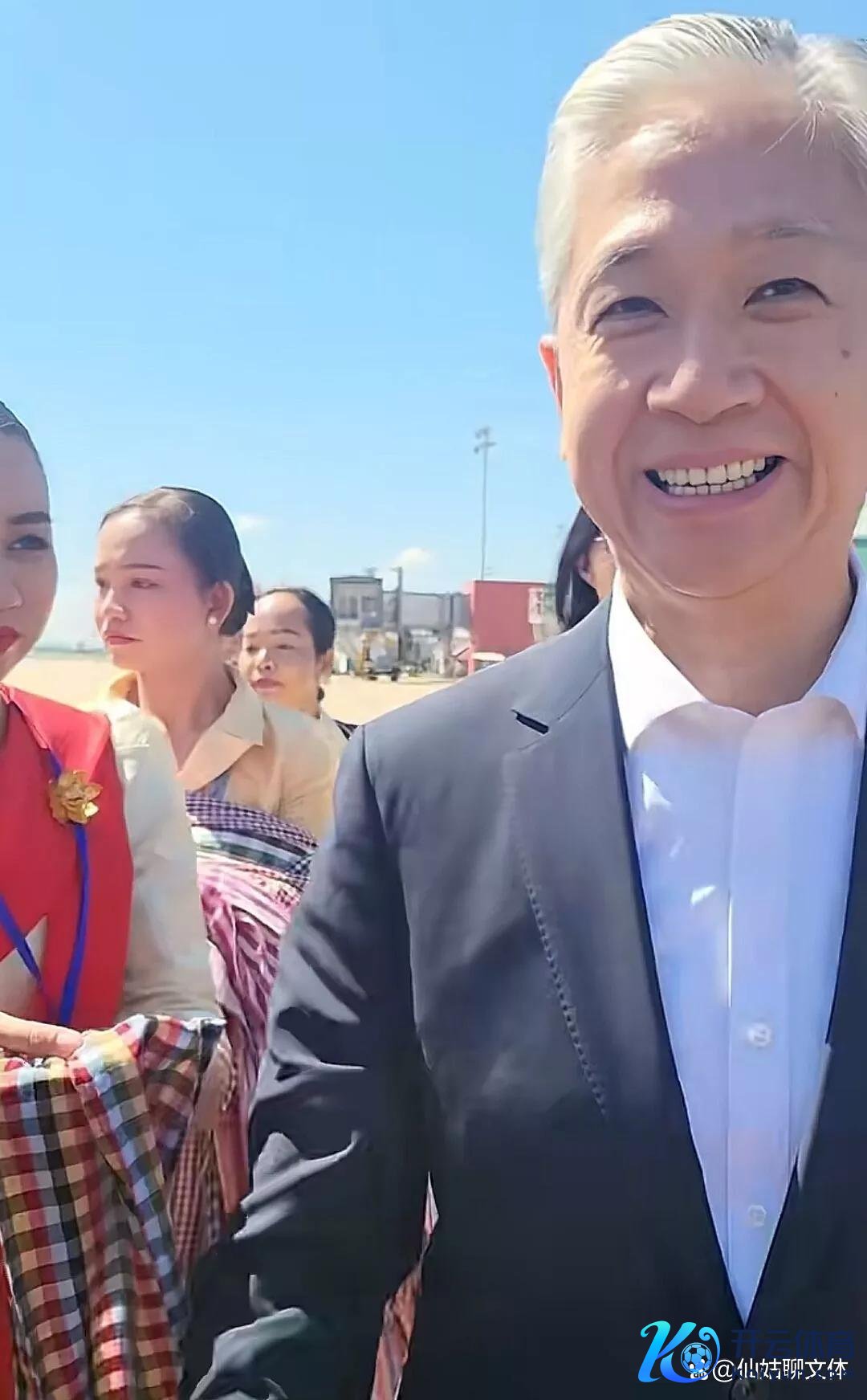 再往前走,汪大使也在那儿恭候着中国同族的到来,亲身给搭客戴上了高棉领巾,这是一种当地的文化,给远说念而来的一又友戴领巾暗意接待