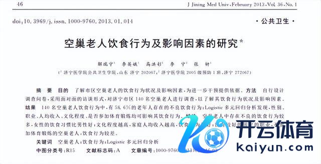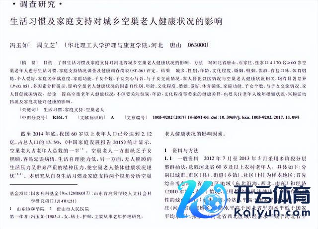 冯玉如,周立芝.生涯民风及家庭守旧对城乡空巢老东谈主健康景色的影响[J].中国老年学杂志,2017,