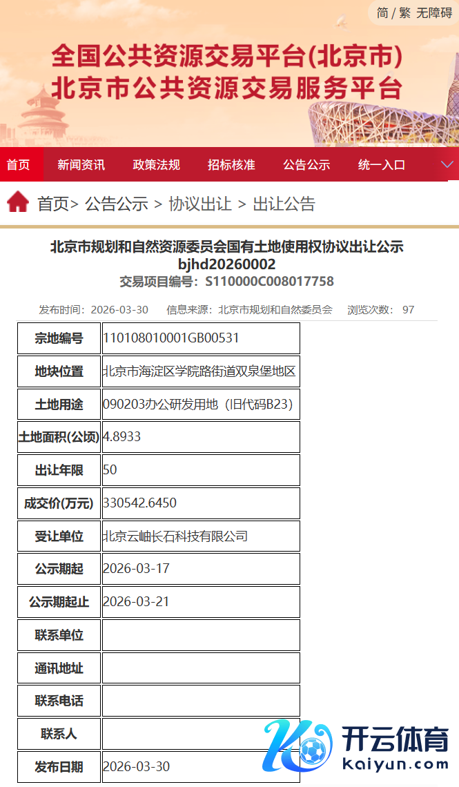IT之家刺眼到,本年 2 月,字节向上旗下公司还曾以 28 亿元底价拿下海淀区蓝景丽家收储形貌 HD00-1603-01、HD00-1603-03A 地块,地块位于海淀区中关村街说念开云体育(中国)官方网站,地盘面积 3.95 万平常米,斥地放胆限制不卓著 9.68 万平常米,地上及地下沿途自执,年限 20 年。