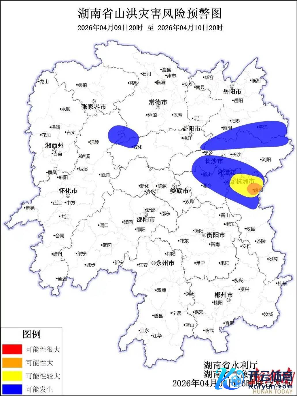 湖南省征象台2026年4月10日7时升级发布暴雨橙色预警:瞻望10日8时至11日8时,湘中部分地区将出现暴雨,其中长沙南部、株洲北部、湘潭、娄底东部部分地区有大暴雨(100~150毫米),并伴有短时强降水(最大小时雨强40~60毫米)、雷雨大风(阵风8级以上、局地10级以上)、冰雹等强对流天气,请加强退避。橙色预警区域:长沙、株洲北部、湘潭、益阳南部、怀化中南部、娄底。湖南省征象台2026年4月10日7时赓续发布强对流蓝色预警:瞻望10日8时至11日8时,湘中部分地区将出现8级以上、局地10级以上雷暴大风、冰雹或短时强降水(最大小时雨强40-60毫米),并可能执续,请加强退避。蓝色预警区域:长沙、株洲北部、湘潭、益阳南部、怀化中南部、娄底、邵阳大部。同期开云体育,昨天晚上,湖南省水利厅与省征象局连合髻布山洪灾害预警,受降雨影响,4月9日20时至10日20时,株洲市、长沙市、湘潭市、岳阳市、常德市、益阳市、怀化市等地局地可能发生山洪灾害,请加强退避,作念好及时监测和预警叫应等责任。橙色预警区域为:醴陵市大部。黄色预警区域为:株洲市石峰区东南部、天元区南部、渌口区大部、醴陵市大部。蓝色预警区域为:长沙市望城区东部、长沙县大部、宁乡市西南部、浏阳市大部;株洲市石峰区西南部、天元区南部、渌口区西北部、攸县北部、醴陵市南部和北部;湘潭市雨湖区西部、岳塘区东北部、湘潭县大部、湘乡市东部、韶山市东部;岳阳湘阴县南部、平江县大部、汨罗市南部;常德桃源县南部;益阳赫山区大部、安化县西部;怀化沅陵县东部。